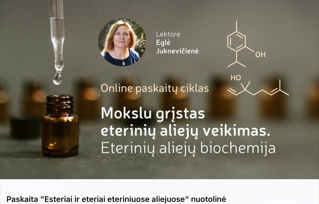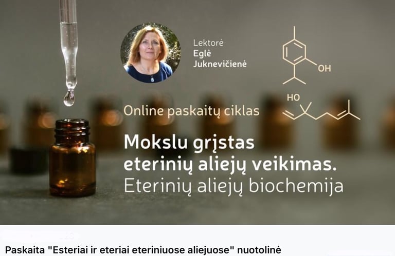 “Esteriai ir eteriai eteriniuose aliejuose" šešta paskaita, iš ciklo "Eterinių aliejų biochemija - kelias į kvapų terapijos pažinimą"