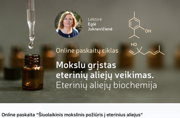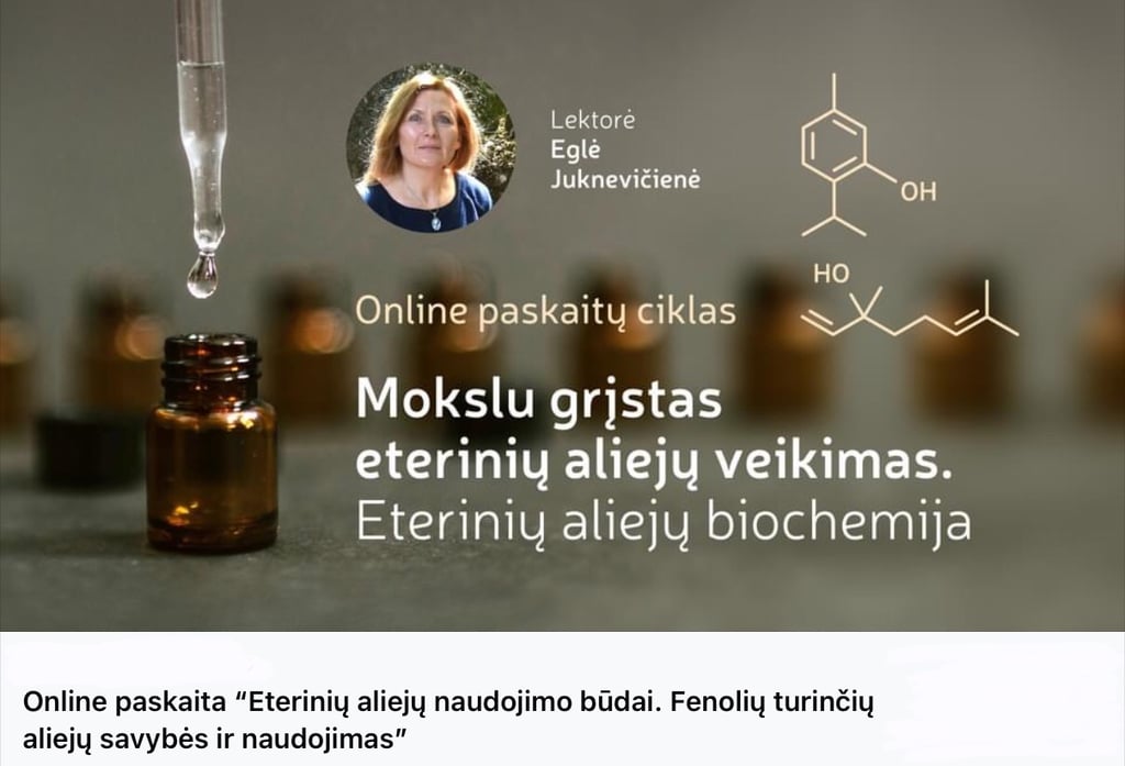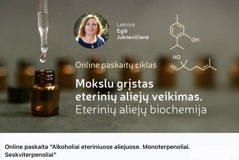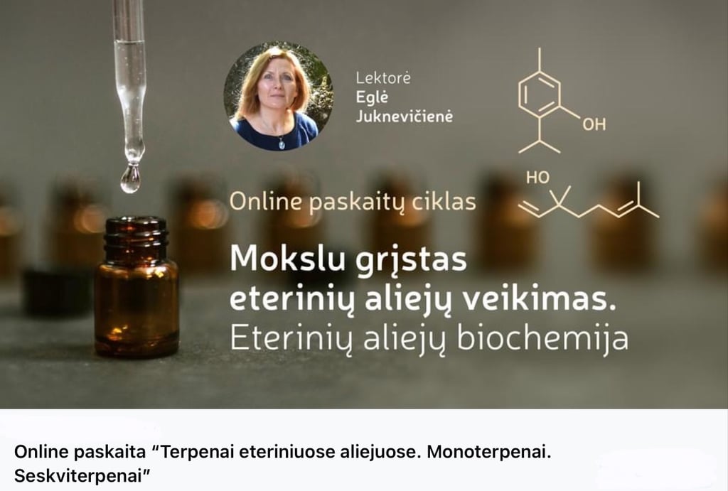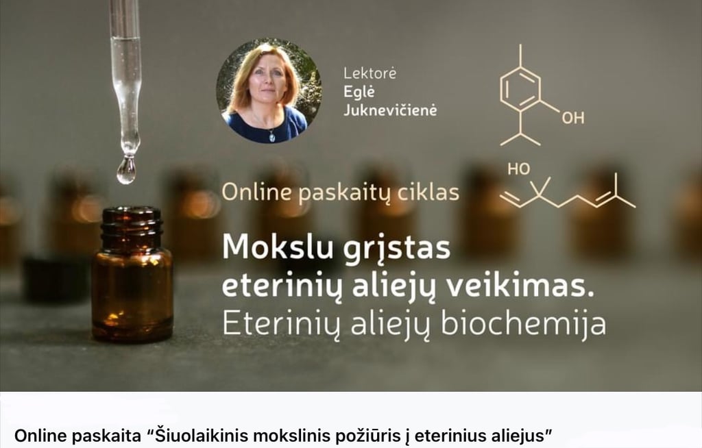 “Šiuolaikinis mokslinis požiūris į eterinius aliejus” - pirma paskaita iš ciklo "Eterinių aliejų biochemija - kelias į kvapų terapijos pažinimą"