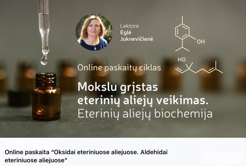 “Oksidai eteriniuose aliejuose. Aldehidai eteriniuose aliejuose” - penkta paskaita iš ciklo "Eterinių aliejų biochemija - kelias į kvapų terapijos pažinimą"