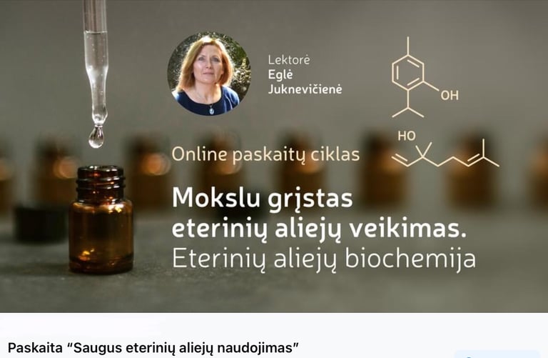 “Saugus eterinių aliejų naudojimas” - devinta paskaita iš ciklo "Eterinių aliejų biochemija - kelias į kvapų terapijos pažinimą"