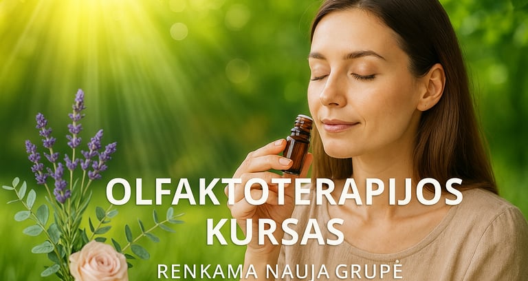 🎁 Dalyviams siūlomas specialus eterinių aliejų rinkinys olfaktoterapijai (195 €). Jis tampa būtinas, jei kursą tektų tęsti nuotoliniu būdu.
